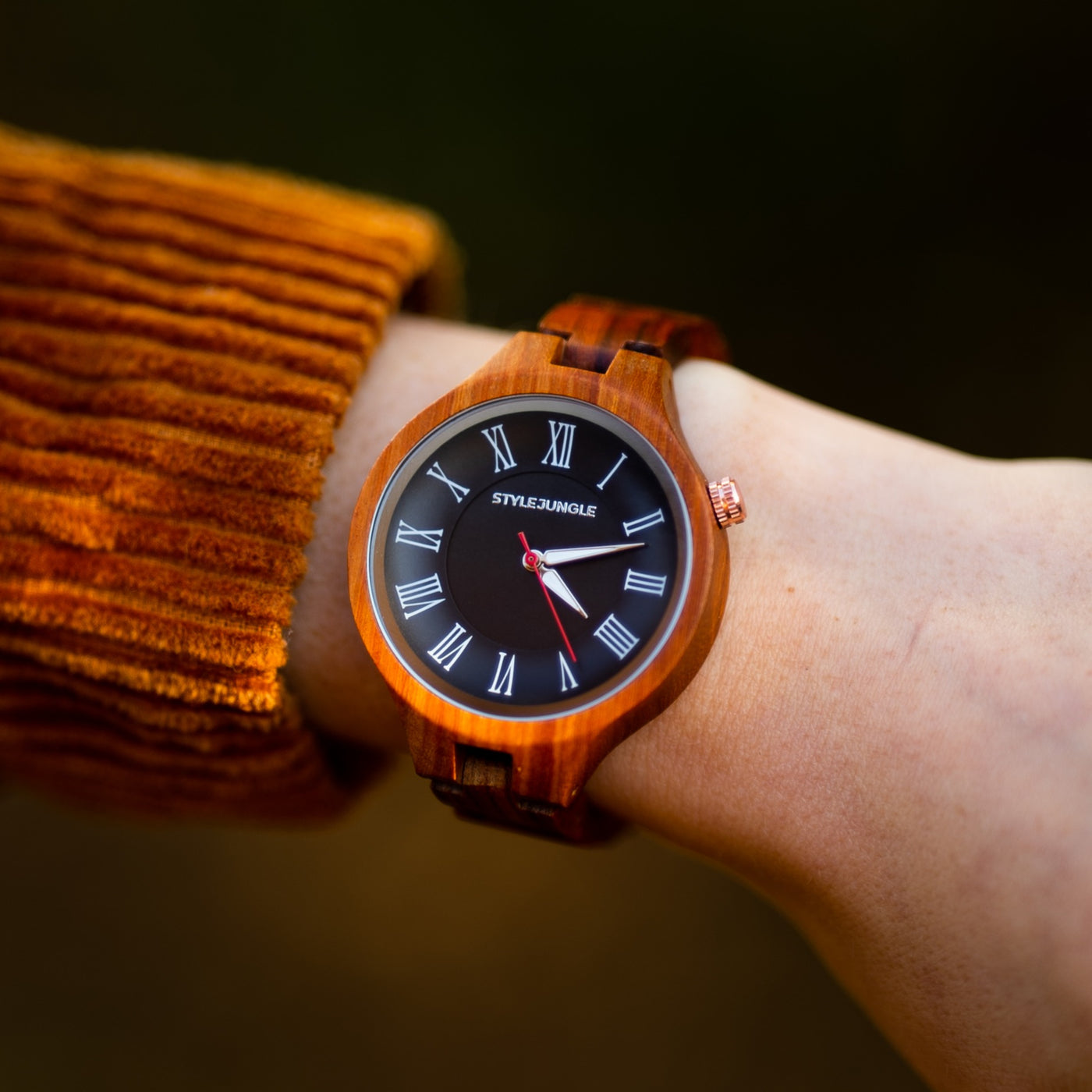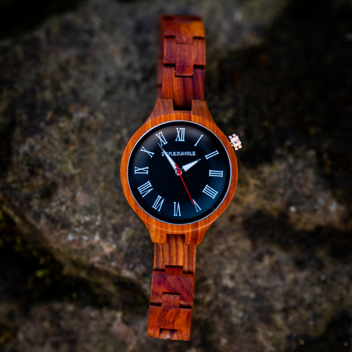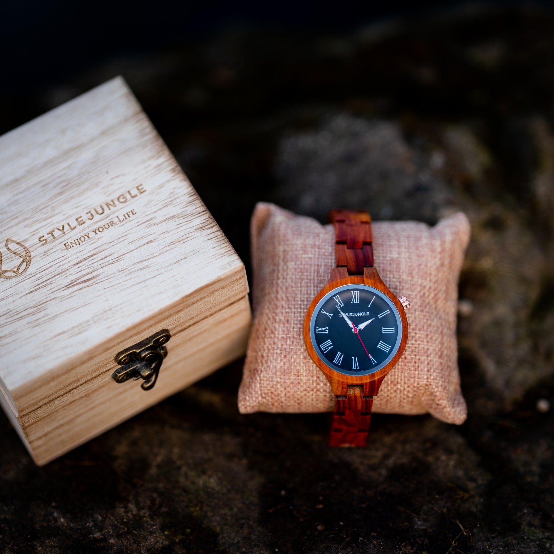 Beschreibung: Charlotte ist ein wahrer Augenmagnet. Auffallend durch das Rosenholz und dem schwarzen Ziffernblatt mit römischen Zahlen machen dieses schöne Schmuckstück zu einem tollen Zeitmesser. Charlotte wurde mit einem Uhrwerk der Marke Citizen ausgestattet. Der silberne Innenring der Uhr rundet das zeitlose & modische Design bestens ab.